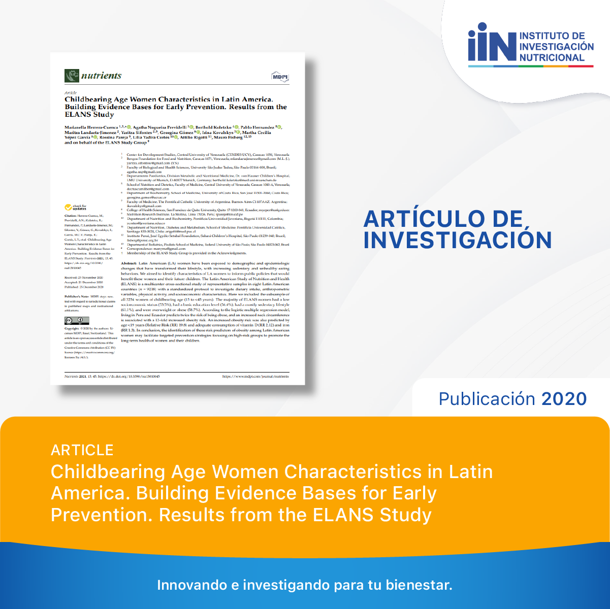 2020 | Childbearing Age Women Characteristics in Latin America. Building Evidence Bases for Early Prevention. Results from the ELANS Study