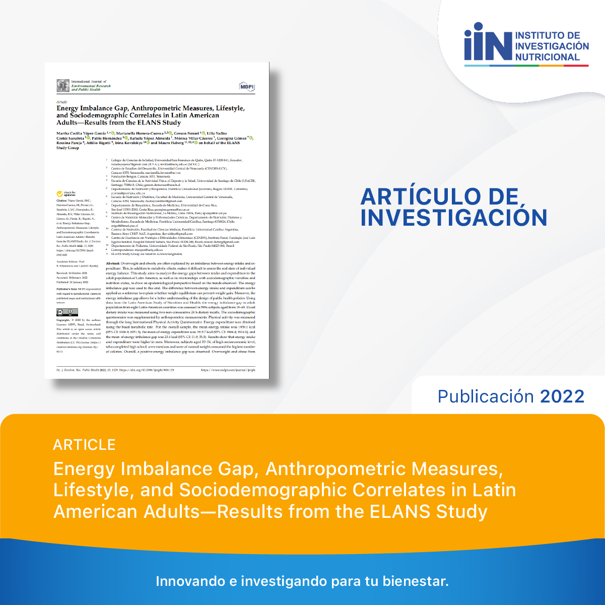 2022 | Energy Imbalance Gap, Anthropometric Measures, Lifestyle, and Sociodemographic Correlates in Latin American Adults-Results from the ELANS Study.